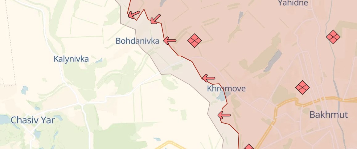 Россияне продолжают активное наступление под Бахмутом, пишут украинские военные паблики. Они уже ведут бои внутри Богдановки, противник продвинулся вглубь села до 300-500 метров, к северу от деревни он закрепился в посадках. От Богдановки, напомним, открывается дорога как на Часов Яр (крупнейший укрепрайон ВСУ на пути к Славянску и Краматорску), так и к коммуникациям ВСУ к западу от Бахмута.