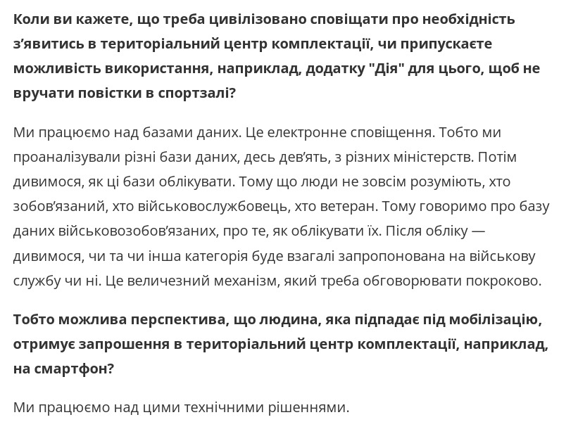 На вопрос, возможно ли, что подпадающий под мобилизацию человек получает приглашение в ТЦК через телефон, Умеров ответил: "Мы работаем над этими техническими решениями".