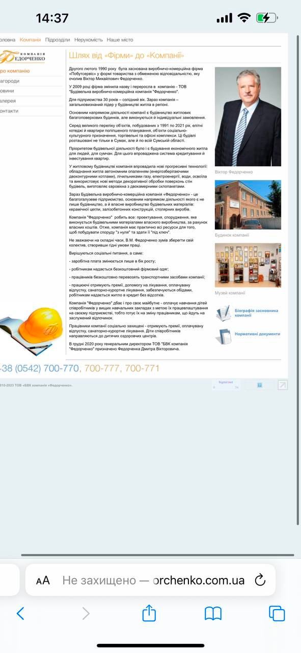 Эту фирму еще в 1990 году основал действующий глава Сумского облсовета Федорченко, о чем сказано на сайте компании. В декабре 2020 года генеральным директором ООО "Федорченко" был назначен сын чиновника - Федорченко Дмитрий Викторович. В те же дни, 3 декабря 2020 года, Федорченко-старший и был назначен председателем Сумского облсовета.