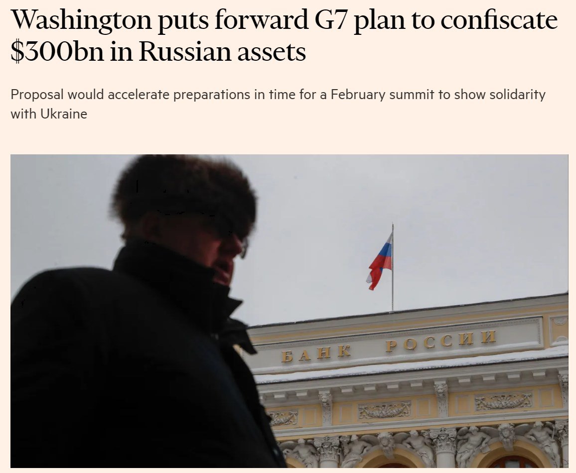 "Стремление захватить российские суверенные активы отражает общее желание показать Москве, что она не сможет пережить решимость Запада помочь Украине, как в экономическом, так и в военном отношении", - говорится в статье.