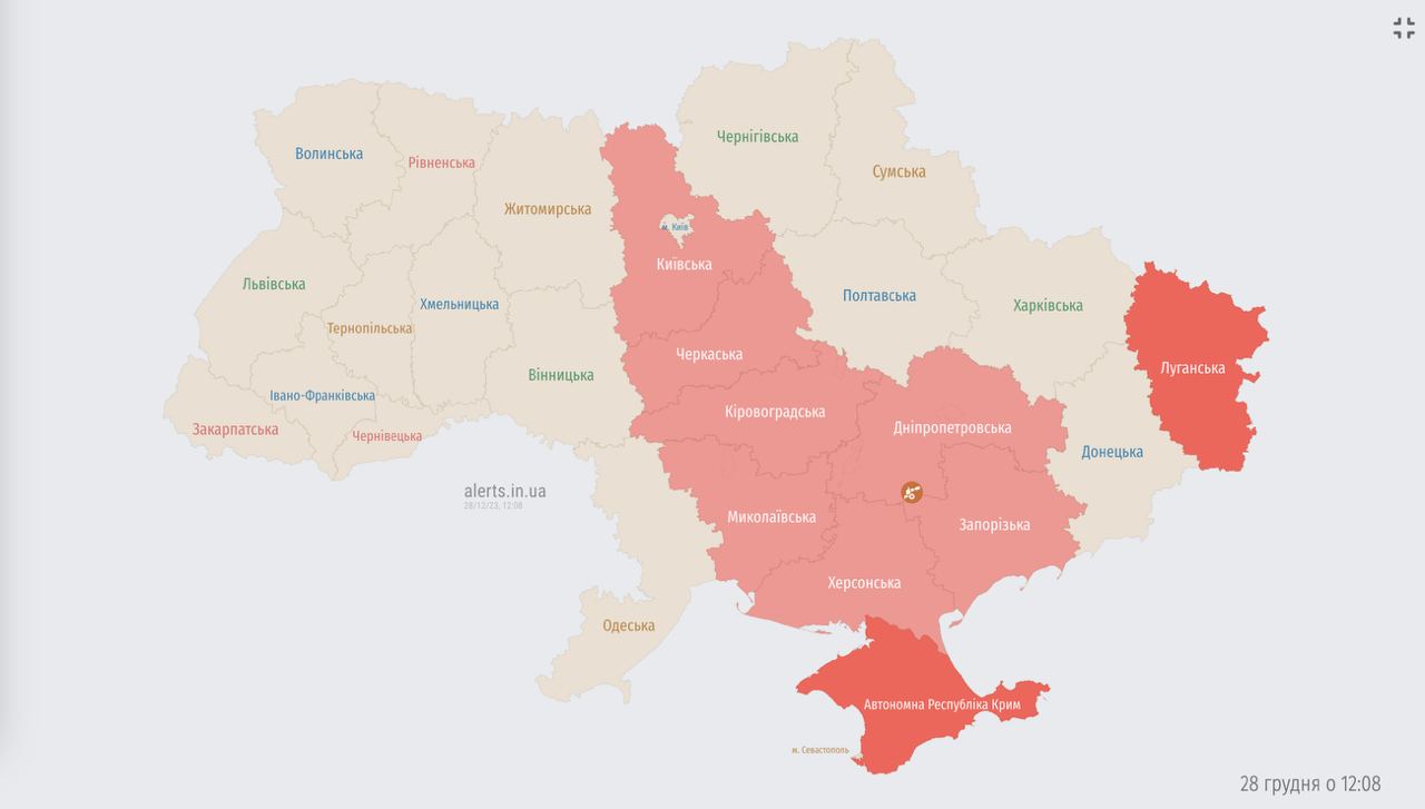 12.08 Тревога объявлена в ряде областей, в том числе и Киевской, но не самом Киеве.