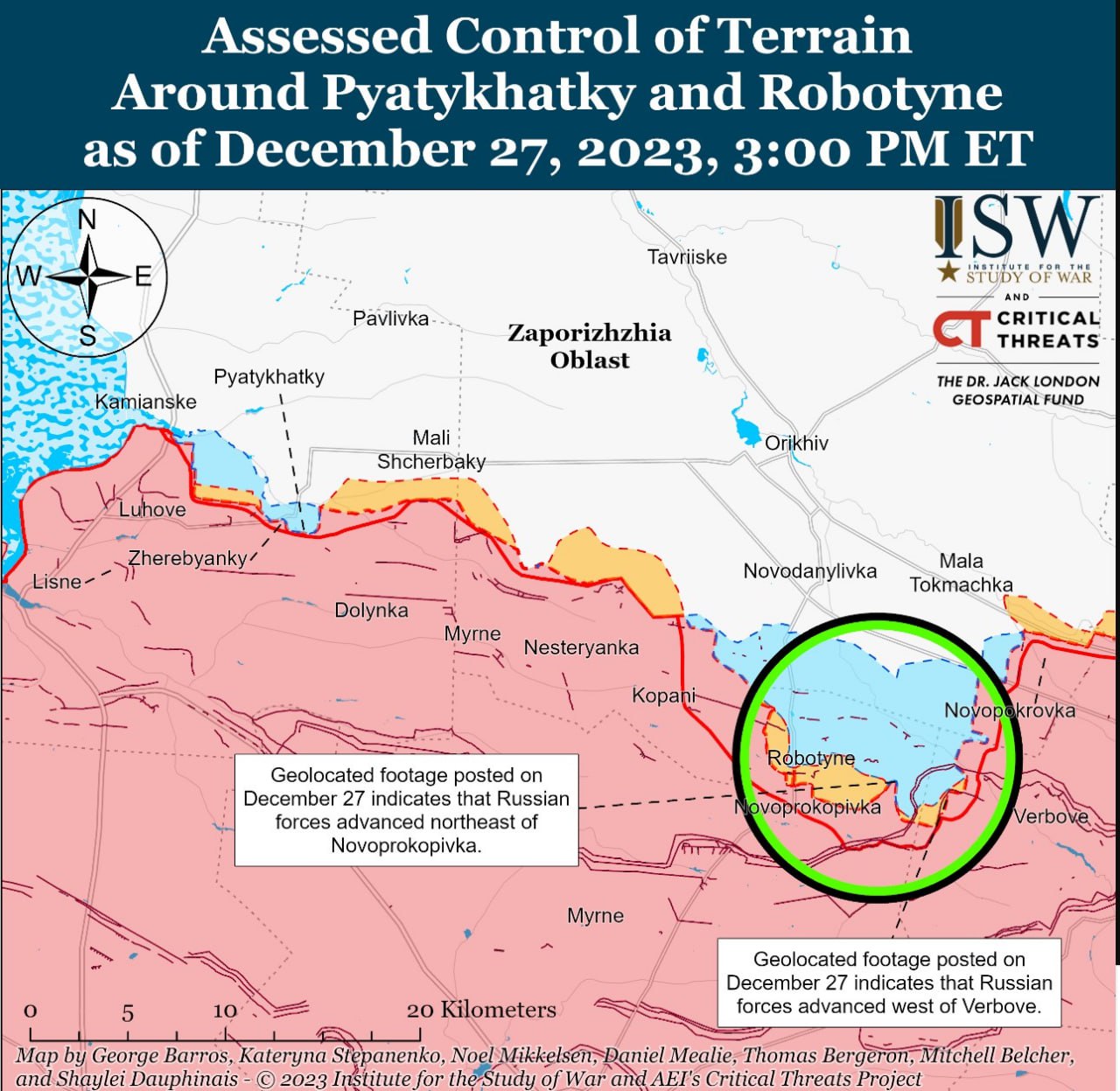 Институт связывает это с тем, что "украинские войска отошли зимой на более защищенные позиции возле Работино".