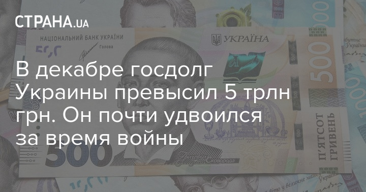 В декабре госдолг Украины превысил 5 трлн грн. Он почти удвоился за время войны