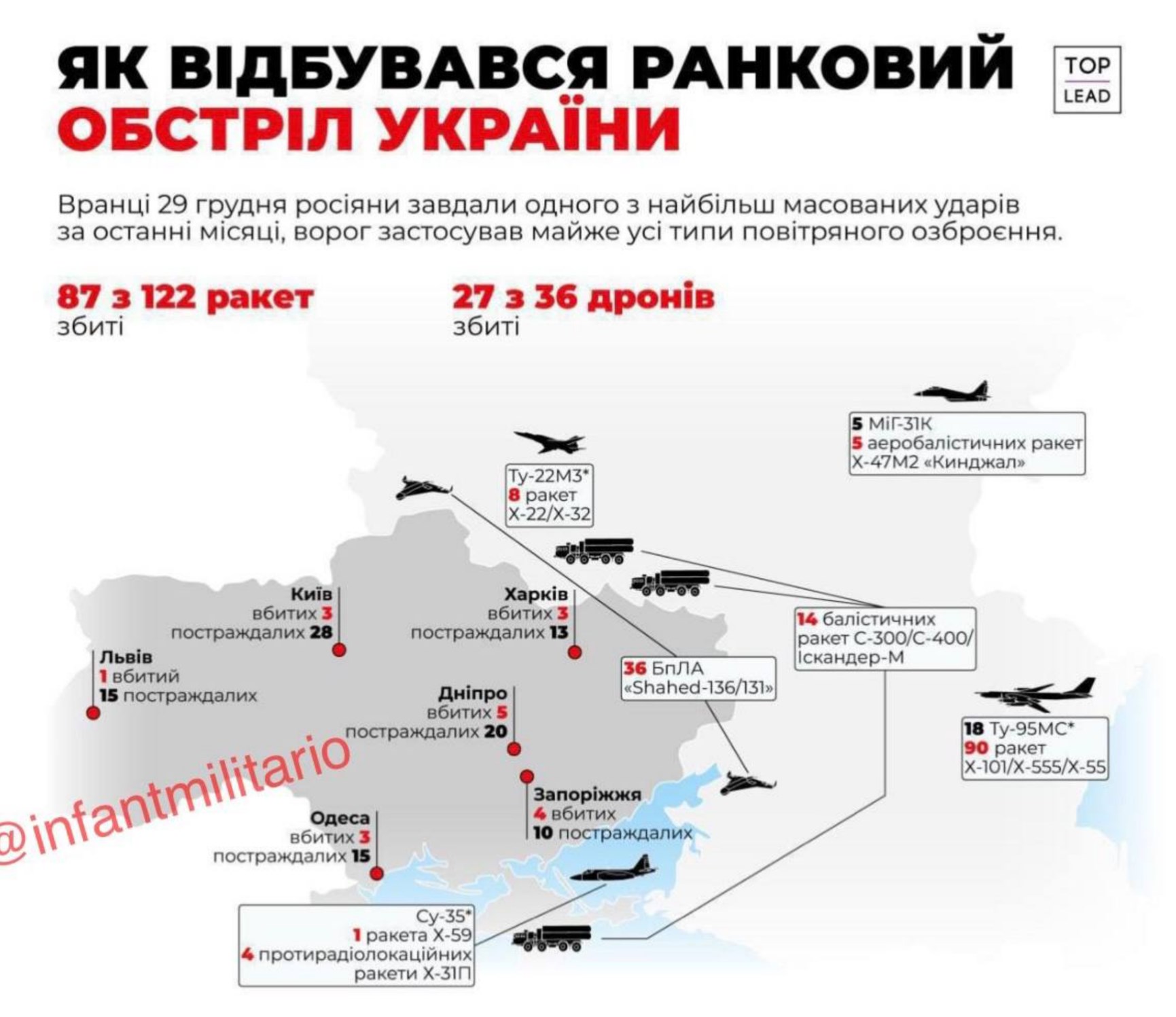 Под удар попал Киев и крупнейшие областные центры - Харьков, Днепр, Запорожье, Одесса, Львов.