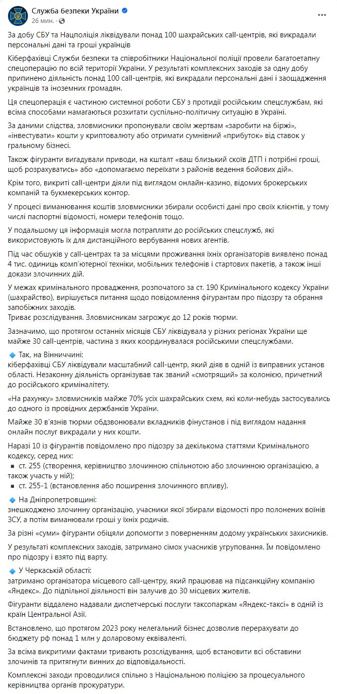 СБУ совместно с полицией за сутки накрыла более 100 мошеннических колл-центров, которые воровали деньги и персональные данные украинцев.