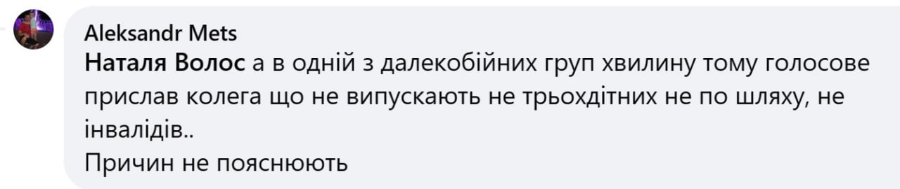 "На Раве (Рава-Русская - Ред.) стоял всю ночь. Вернули назад. Едет только первая группа, и многодетные "при отметке отсрочки". Шлях - не все", - пишет другой пользователь. Он уточняет, что вторую и третью группу инвалидности не выпускают.