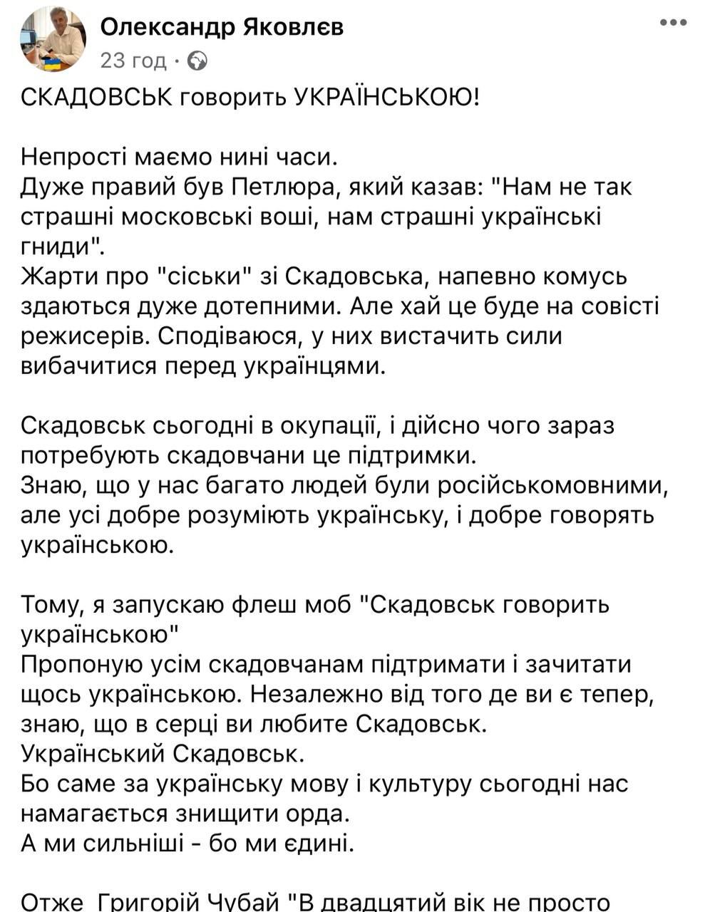"Плюнули в душу"; "Я сама скадовчанка, впервые слышу, чтобы в Скадовске так разговаривали, для меня этот ролик очень оскорбительный. Я вас после этого просто ненавижу. Это вы так объединяете Украину? Стыдно за вас"; "Испанский стыд! Как так можно, в Скадовске очень красиво говорят на украинском, так и на русском тоже. Хочу знать авторов этого дерьма! Каждую фамилию хочу узнать!"; "Дно. Это ж какой гнилой личностью нужно быть, чтобы так неуважительно шутить о людях из оккупации", - пишут пользователи.