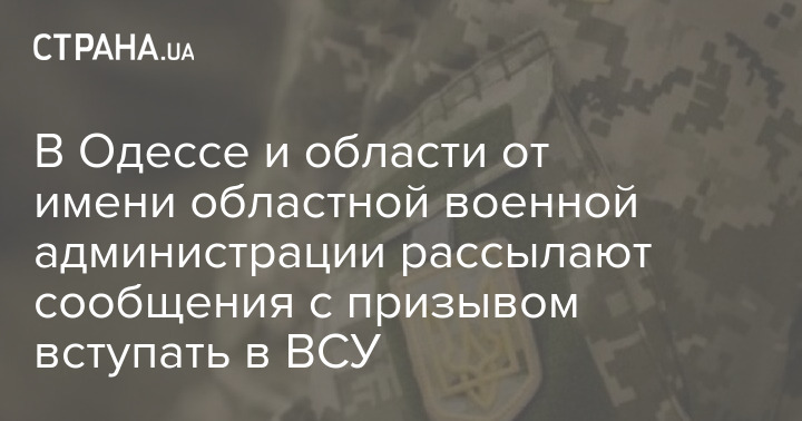 В Одессе и области сегодня от имени областной военной администрации абонентам на мобильные телефоны рассылают сообщения с призывом вступать в ВСУ.
