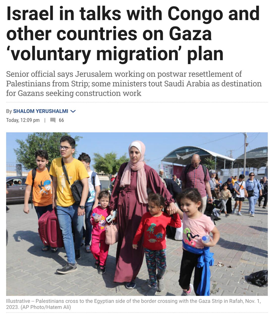 Израиль тайно обсуждает с Конго и другими неназванными странами возможное переселение палестинцев из сектора Газа после окончания войны. Называется это добровольной миграцией.