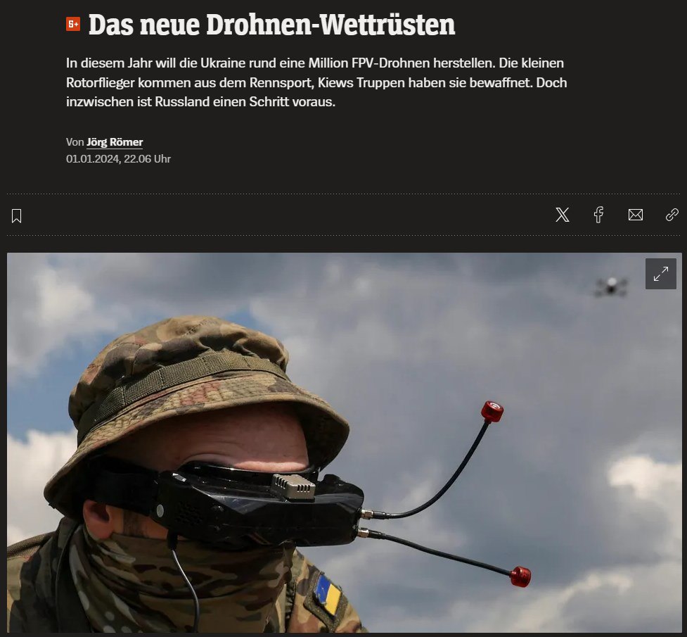 Ранее президент Владимир Зеленский заявил, что в наступившем году Украина произведет миллион FPV-дронов. Но Spiegel пишет, что сейчас преимущество по этому типу вооружений на стороне РФ.