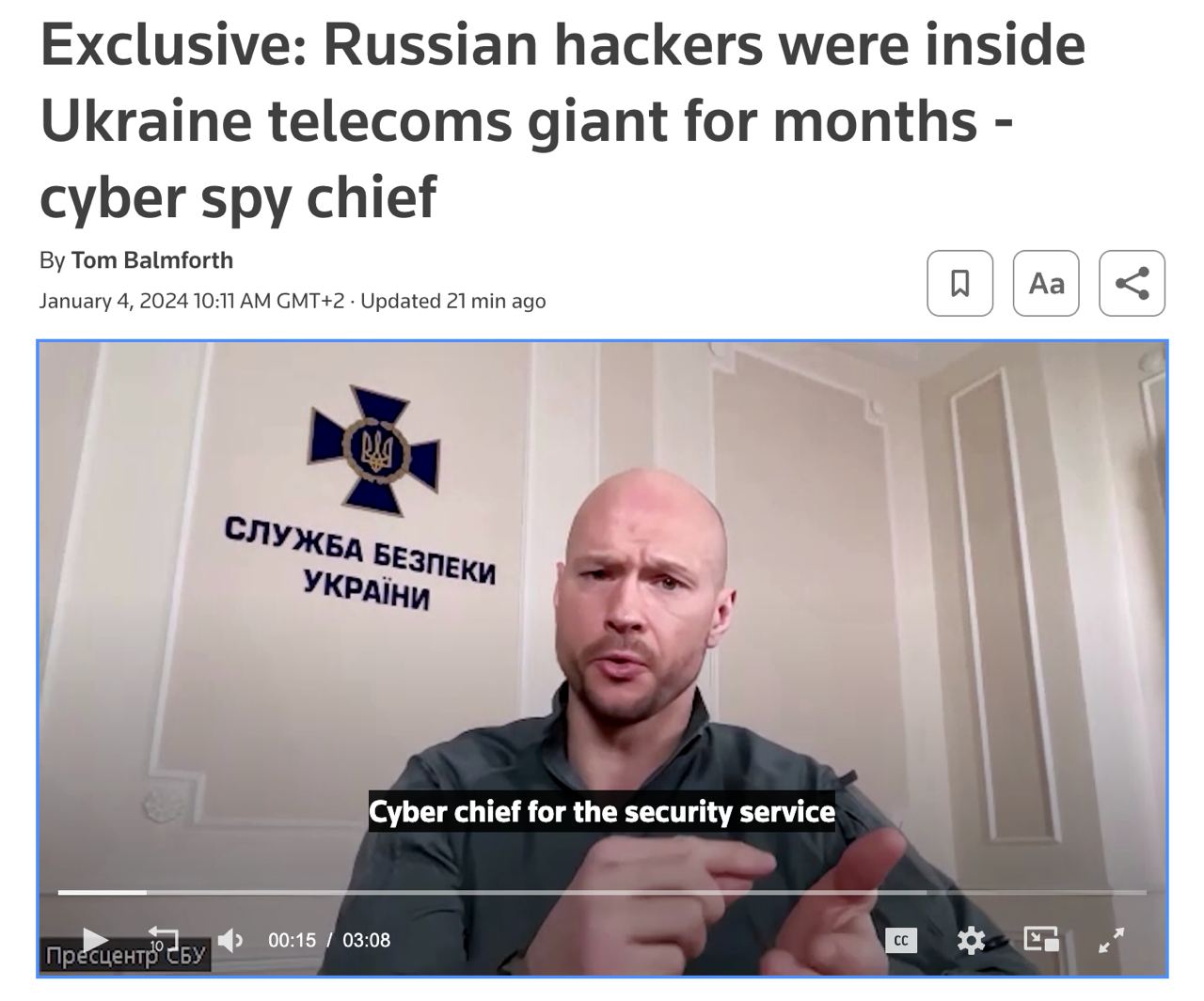 Об этом пишет Reuters со ссылкой на слова начальника управления кибербезопасности СБУ Ильи Витюка.