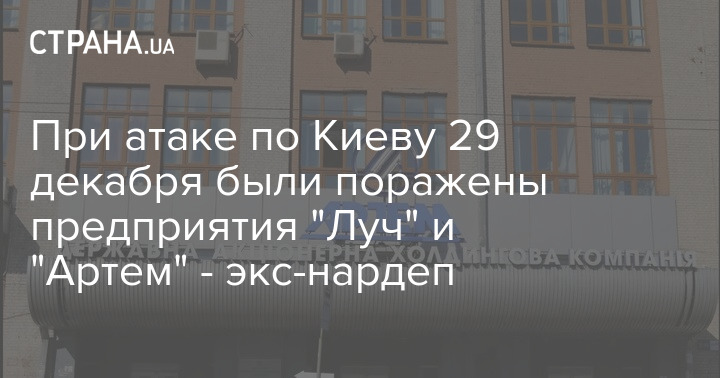 При атаке по Киеву 29 декабря были поражены предприятия "Луч" и "Артем" - экс-нардеп