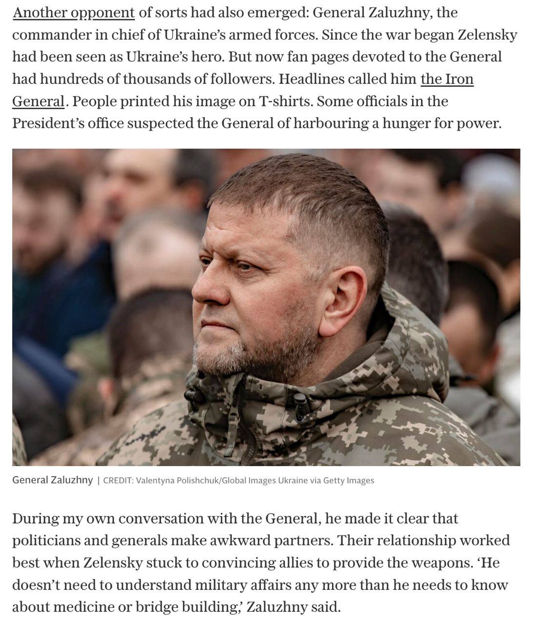«Ему не нужно разбираться в военном деле больше, чем нужно знать о медицине или строительстве мостов», — сказал Залужный.