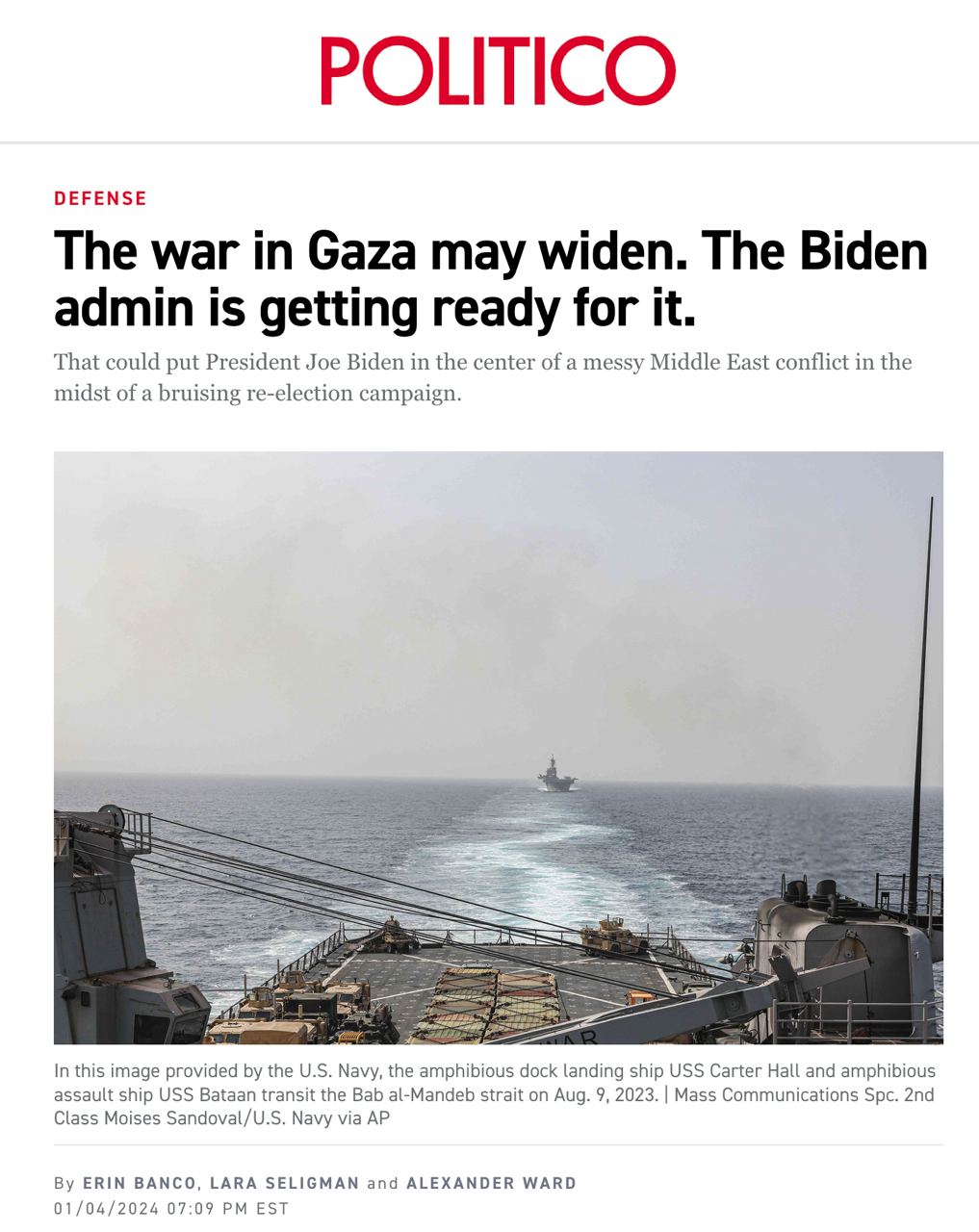 Большая война на Ближнем Востоке опасна не только для региональной безопасности, но и шансов Байдена на переизбрание, отмечает Politico.