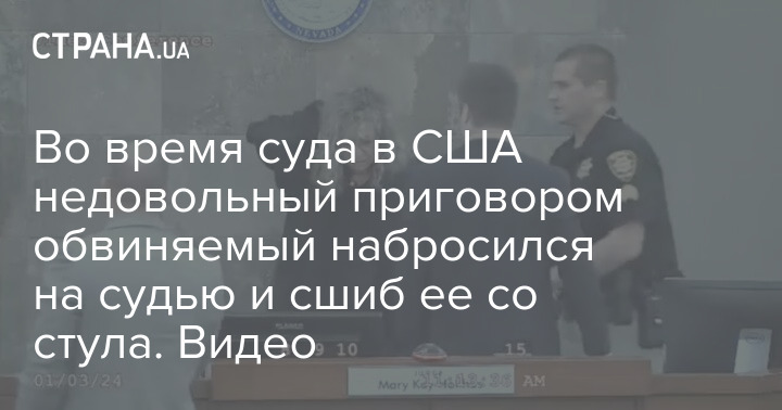 Во время суда в США недовольный приговором обвиняемый набросился на судью и сшиб ее со стула. Видео