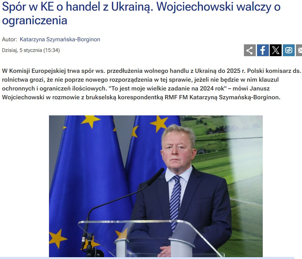 Европейский комиссар по сельскому хозяйству Януш Войцеховский выступил против продления режима свободной торговли с Украиной, если не будут введены ограничения на ввоз в Евросоюз продукции украинского агропромышленного комплекса.