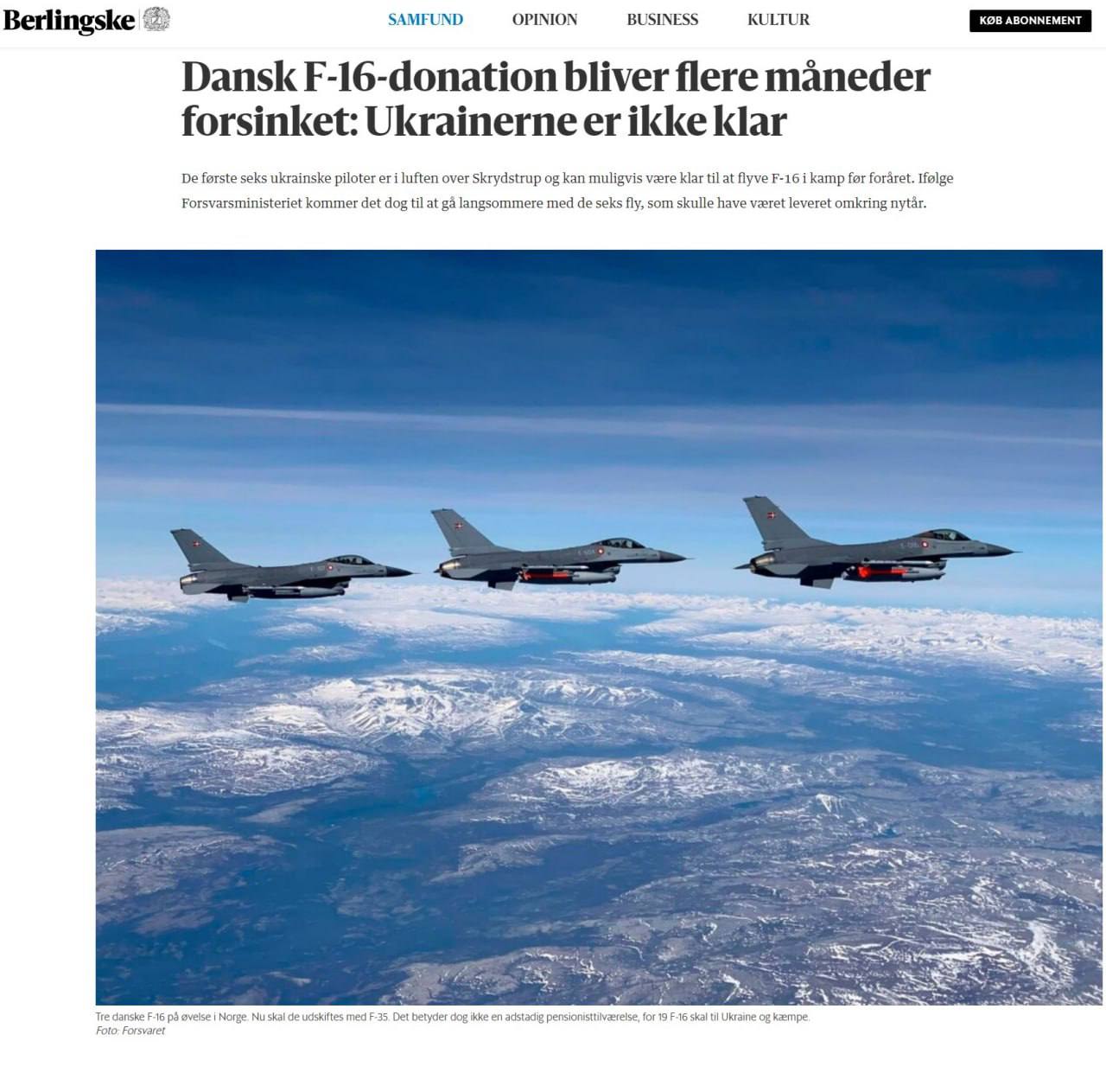 Изначально поставка планировалась в районе нового года, однако теперь она перенесена на второй квартал. Некоторые условия для боевого применения F-16 пока не выполнены, заявили в Минобороны Дании.