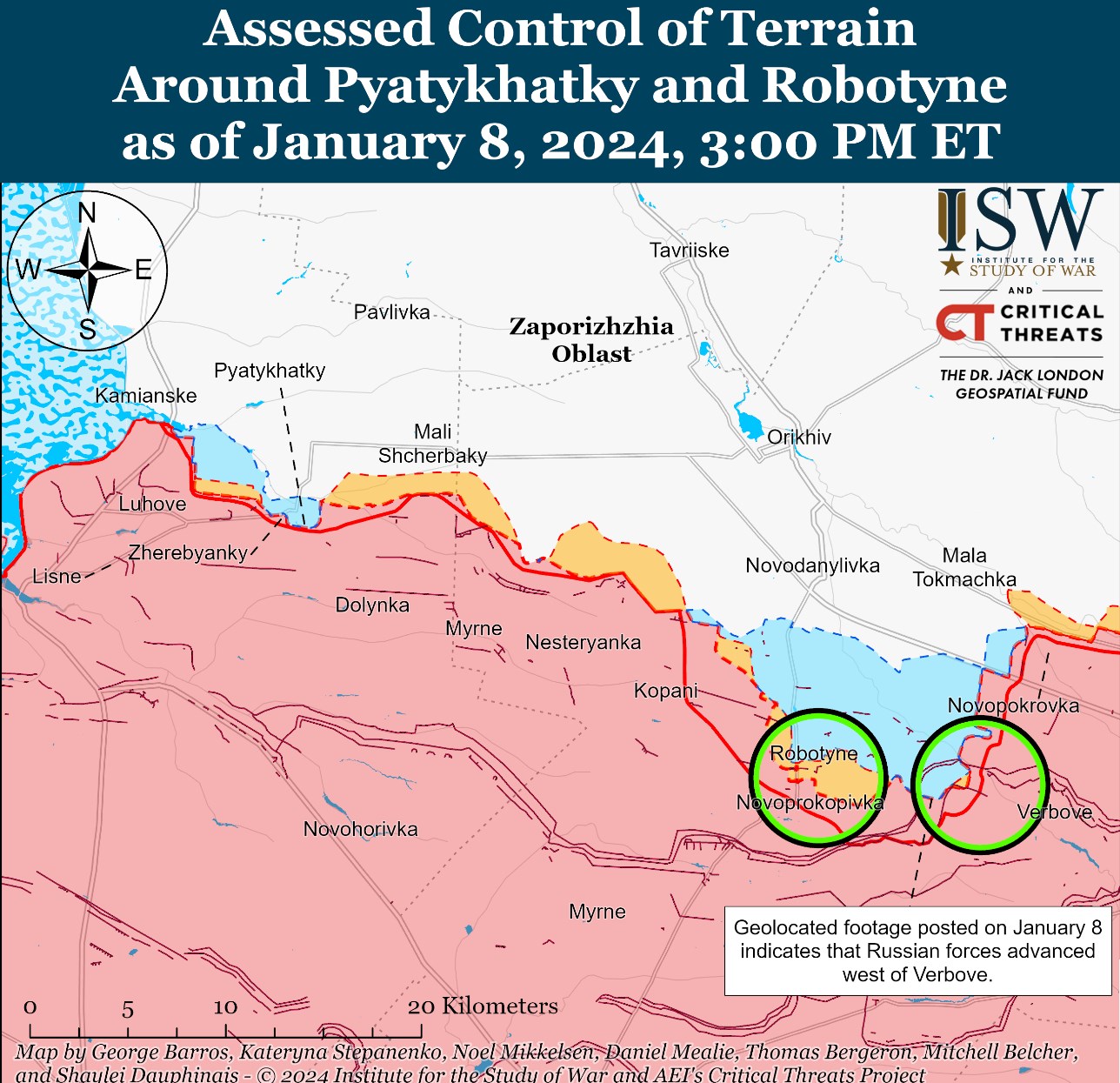 Судя по кадрам с привязкой к местности, которую идентифицировали эксперты, войска РФ находятся на восточной окраине села Георгиевка к западу от недавно захваченной Марьинки. Там же они перешли речку Осыковая.