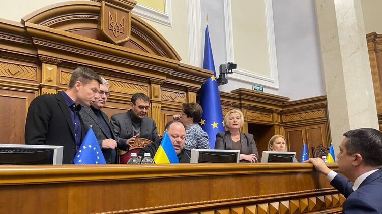 Сначала несколько депутатов от разных фракций пытались с места внести вопрос на рассмотрение. Но, по словам Железняка, против выступил глава фракции "Слуг народа" Давид Арахамия.