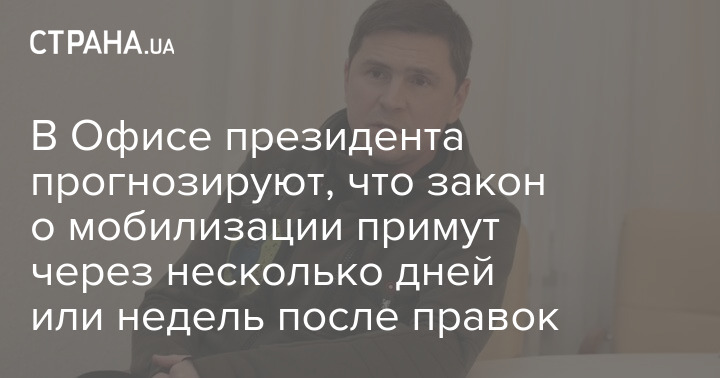 В Офисе президента прогнозируют принятие законопроекта о мобилизации через несколько дней или недель после того, как в него внесут поправки.