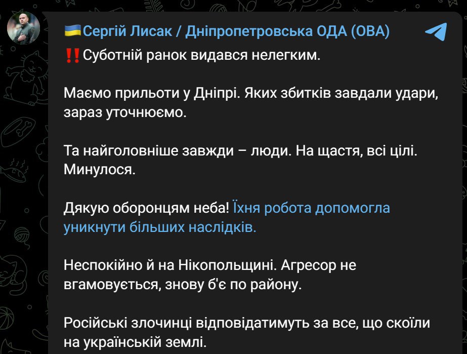 10.38 В Днепре есть прилеты после утренней ракетной атаки, сообщила ОВА.