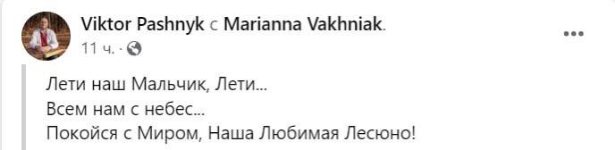 Об этом сообщил отец Велеса Виктор Пашник на своей странице в Facebook.
