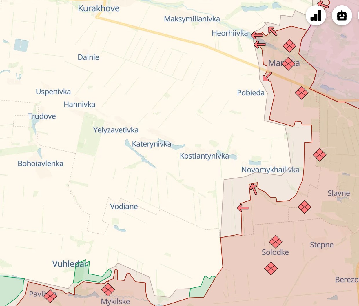 Институт изучения войны заявляет, что российские войска продвинулись к западу от Марьинки - на восточную окраину Георгиевки.