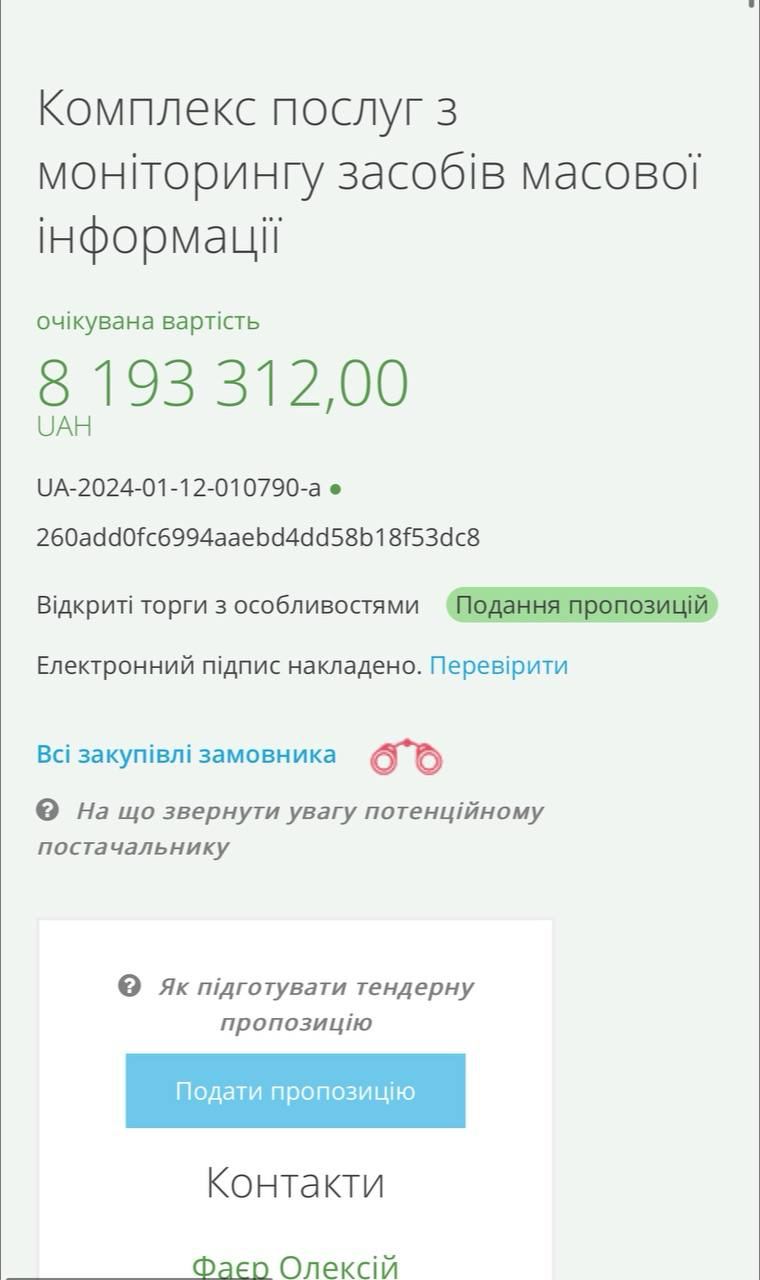 В тендерной документации указано, что это нужно для "оценки распространения необходимых нарративов" и "оценки лояльности медиа к персонам".