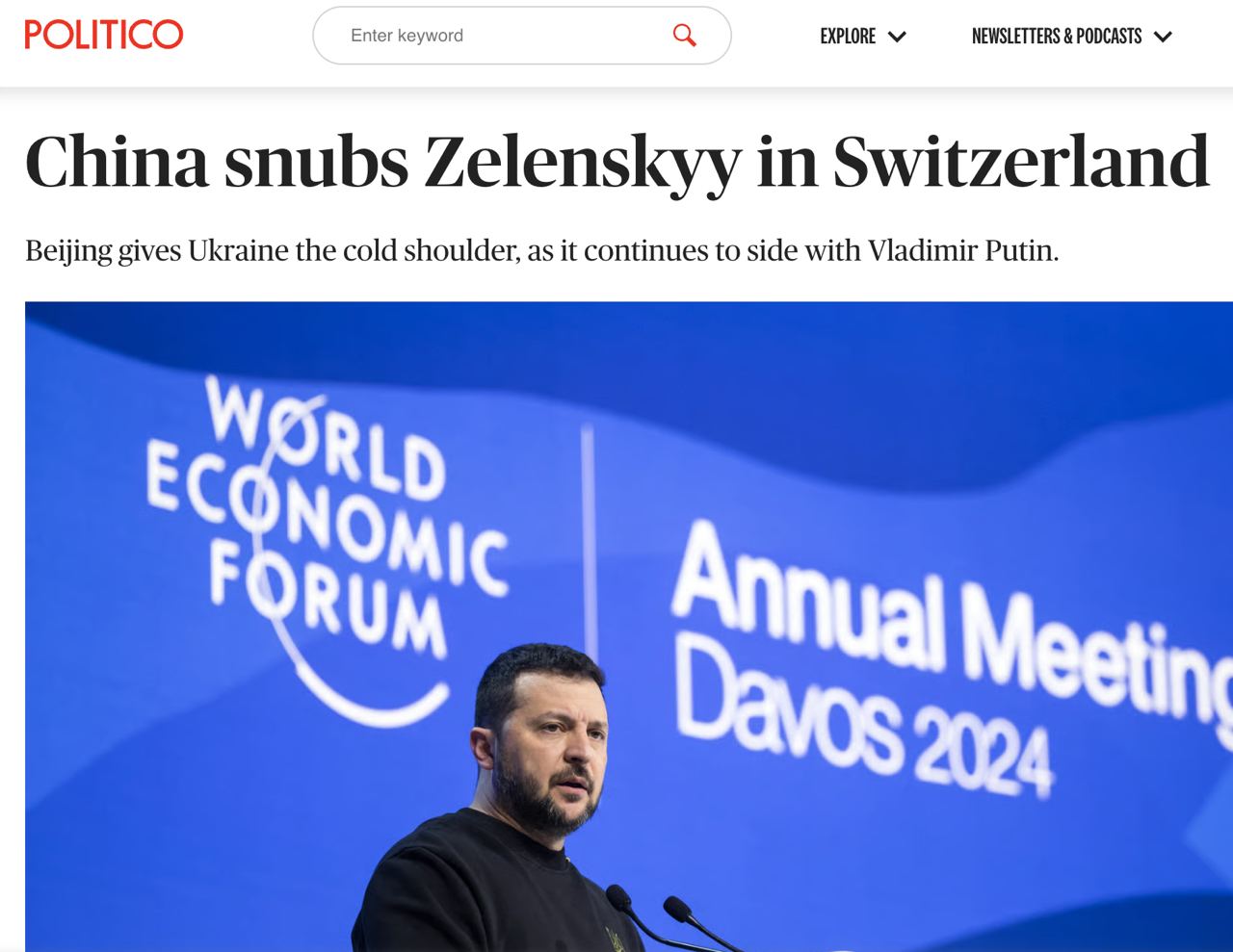 Зеленский отреагировал на публикацию, заявив, что и не планировал встречаться в Давосе с китайским премьером, потому что это не его уровень.