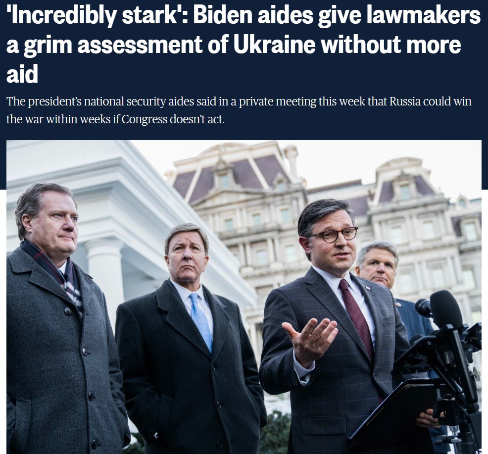 Если Конгресс не выделит Украине дополнительную помощь, "Россия может выиграть войну за считанные недели - в лучшем случае месяцы".