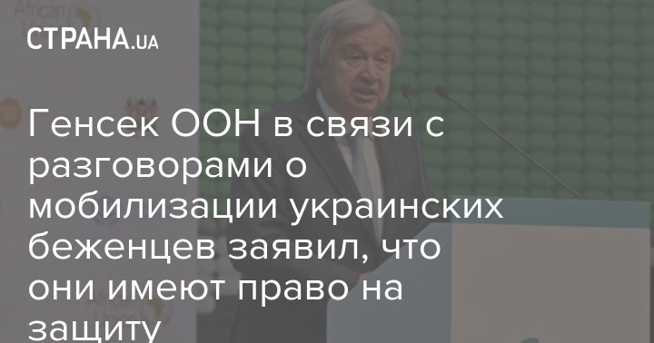 Генсек ООН в связи с разговорами о мобилизации украинских беженцев заявил, что они имеют право на защиту