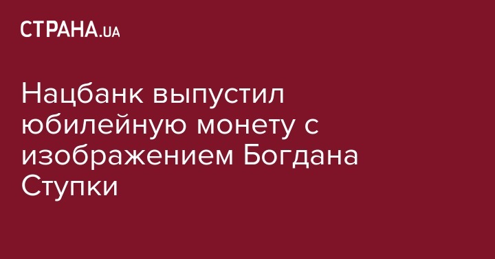 "В понедельник,19 декабря, Национальный банк введет в обращение памятную монету "Богдан Ступка", посвященную известному украинскому актеру, Герою Украины Богдану Ступке, сыгравшему более 150 ролей в кино и театре", - говорится в сообщении.