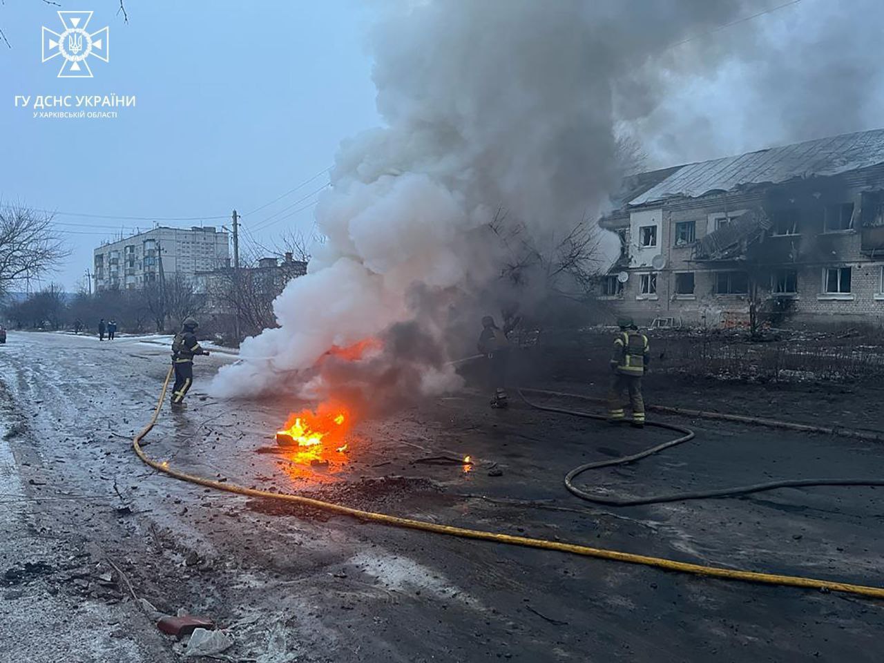 Последствия обстрела Купянска 22 января 2024 года