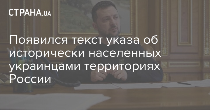 Появился текст указа Владимира Зеленского "Об исторически населенных украинцами территориях Российской Федерации", который он упомянул во время поздравления с Днем соборности Украины сегодня.