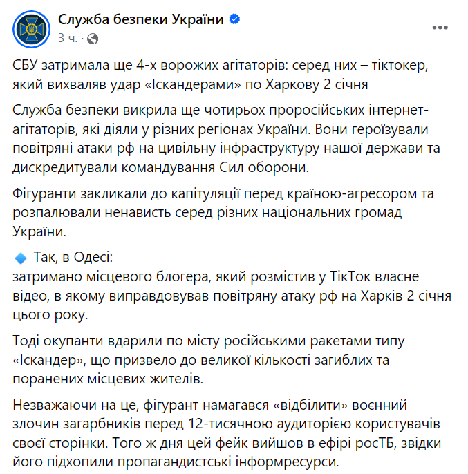 Служба безопасности Украины задержала четырех вражеских агитаторов, среди них одесский ТикТокер, который оправдывал российскую агрессию.
