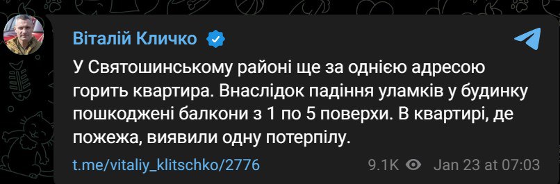 09.40 Сводка от Кличко по последствия ракетного обстрела Киева на эту минуту.