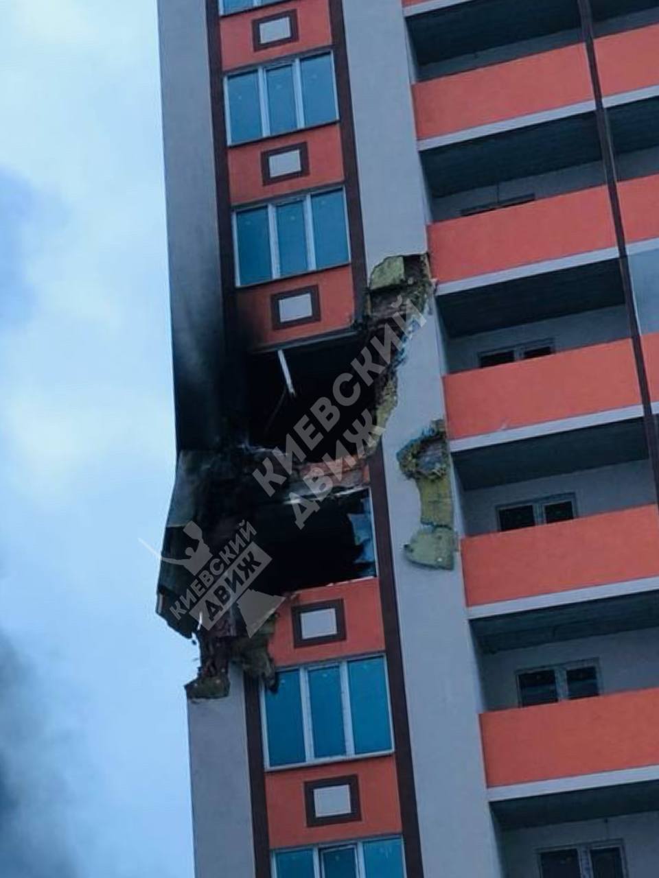 08.12 Зафиксировано падение обломков ракет на крышу многоэтажки в Дарницком районе Киева.