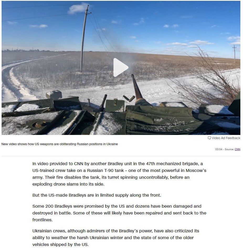 Также сообщается, что запасы Bradley на передовой ограничены, поскольку из 200 обещанных БМП "десятки были повреждены и уничтожены в боях".