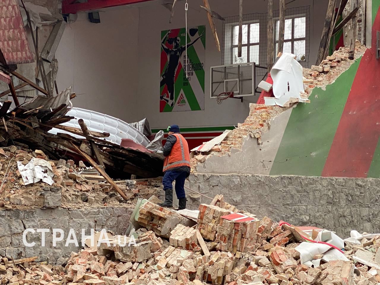 14.40 В Киеве демонтируют разрушенное здание спорткомплекса "Локомотив", которое было повреждено во время атаки 23 января.