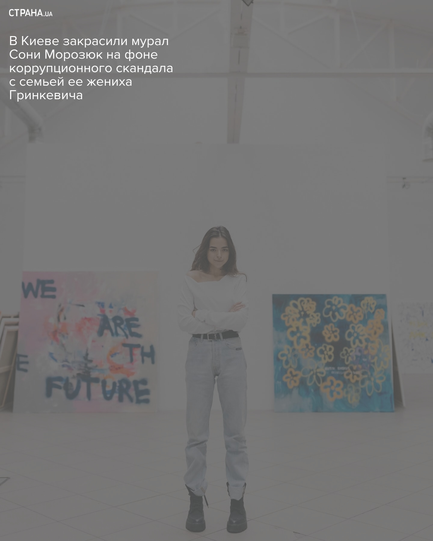 На фоне громкого коррупционного скандала со львовской семьей бизнесменов Гринкевичей один из муралов Сони Морозюк (невесты Романа Гринкевича) в Киеве был закрашен по приказу Подольской районной администрации.