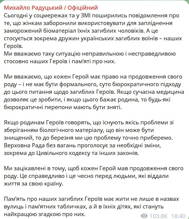 Минздрав Украины подтвердил, что существует "законодательная коллизия" из-за которой репродуктивные клетки погибших военных невозможно использовать для продолжения рода.