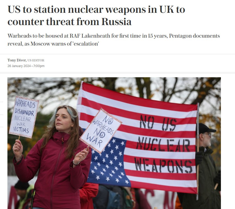 "Контракты на поставку нового объекта на авиабазе Королевских ВВС Лейкенхит в Саффолке подтверждают, что США намерены разместить на авиабазе ядерные боеголовки, в три раза превышающие мощность бомбы, сброшенной на Хиросиму. США вывели ядерные ракеты из Великобритании в 2008 году, посчитав, что угроза холодной войны со стороны Москвы уменьшилась", - говорится в материале.