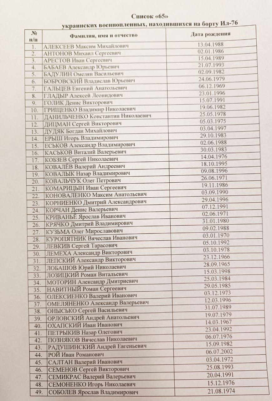 Ранее украинские СМИ и омбудсмен заявляли, что часть пленных из списков уже обменивали. Однако за прошедшее время с момента крушения самолёта эти люди так и не были предъявлены общественности.