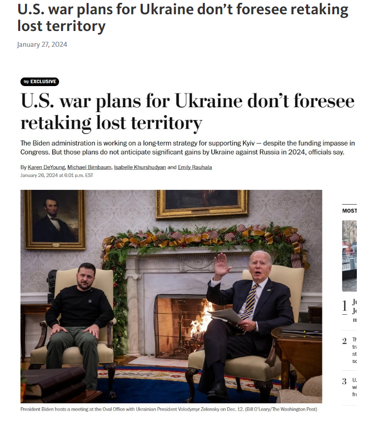 Планы США по Украине не предусматривают возвращения утраченных территорий. Администрация Байдена работает над долгосрочной стратегией поддержки Киева.