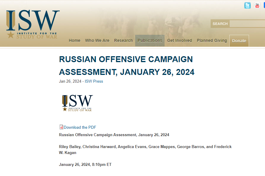 Любое прекращение огня пойдёт на пользу РФ — Институт изучения войны
