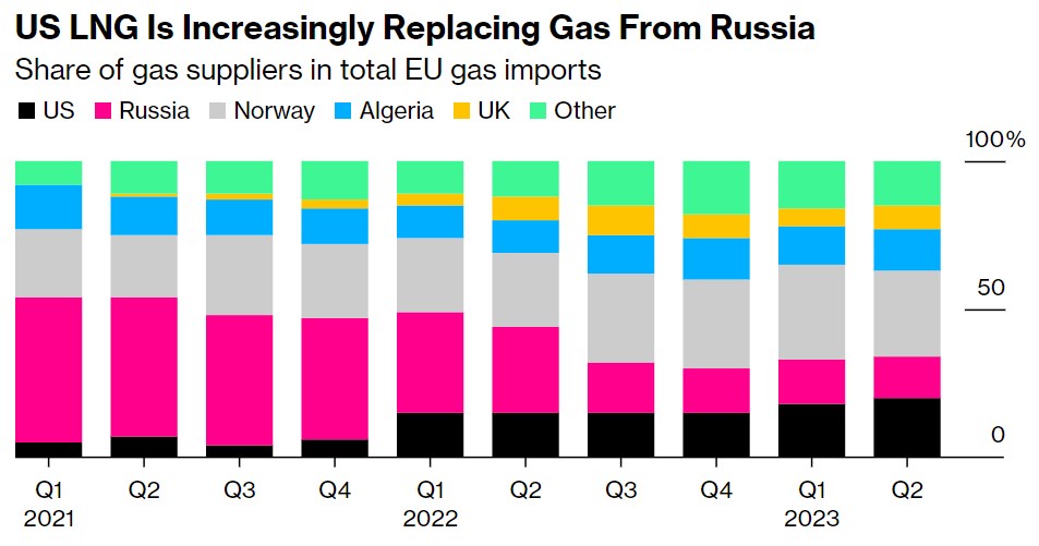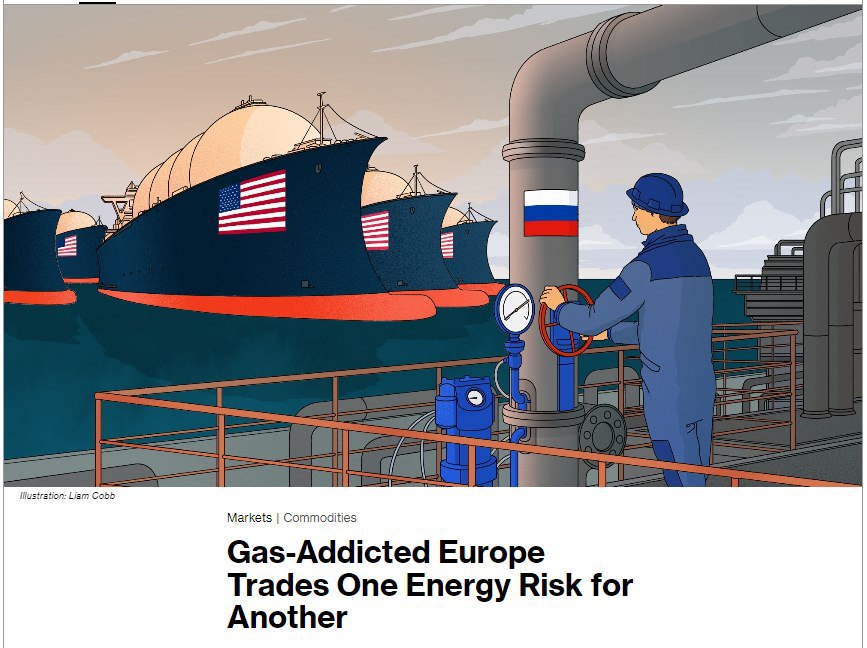 Европа, "зависимая от газа, меняет один энергетический риск на другой", заменяя поставки природного газа из России поставками сжиженного природного газа из США.