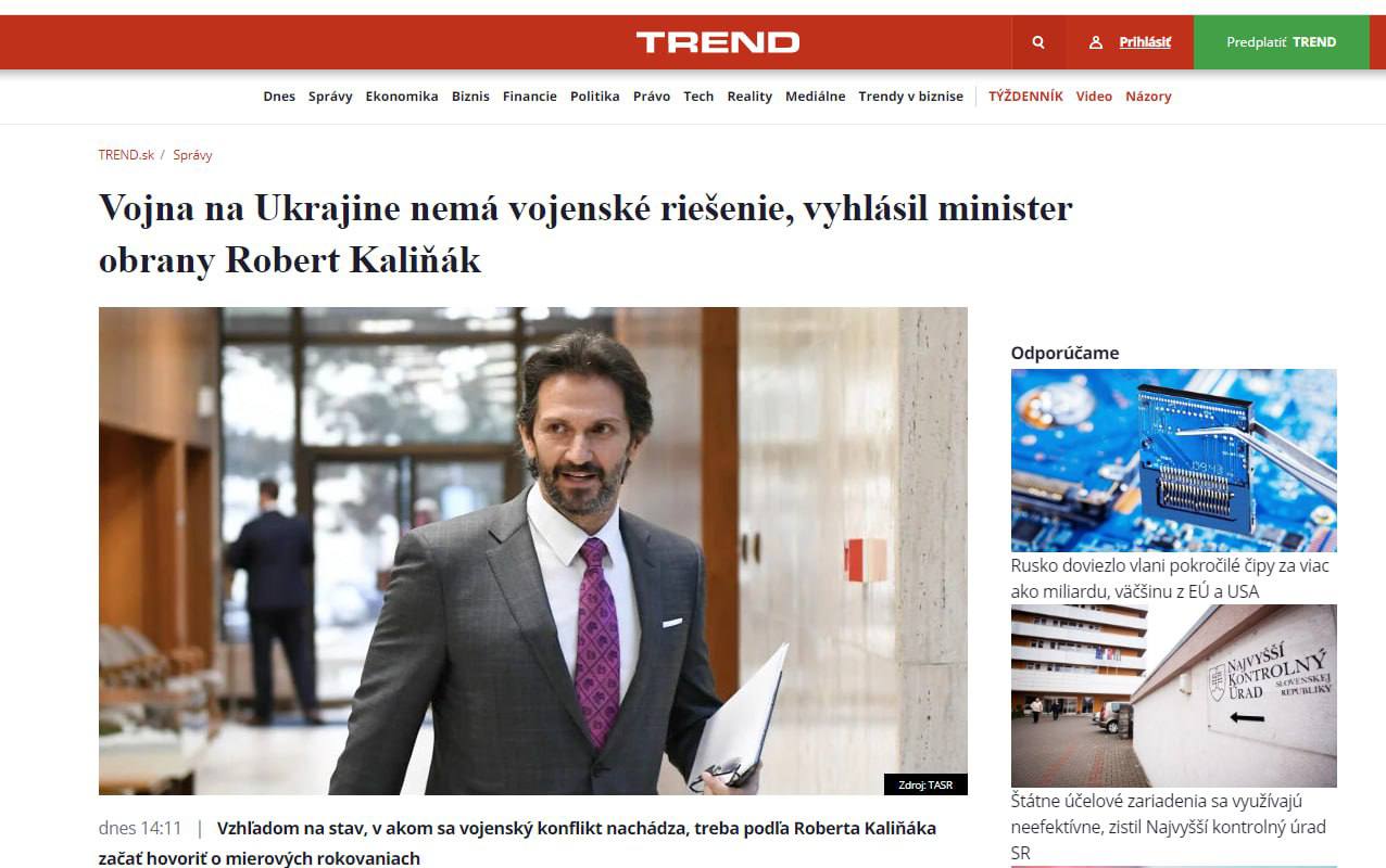 Роберт Калиняк заявил, что ситуация на фронте в Украине заморожена. Фото: Facebook/Robert Kaliňák