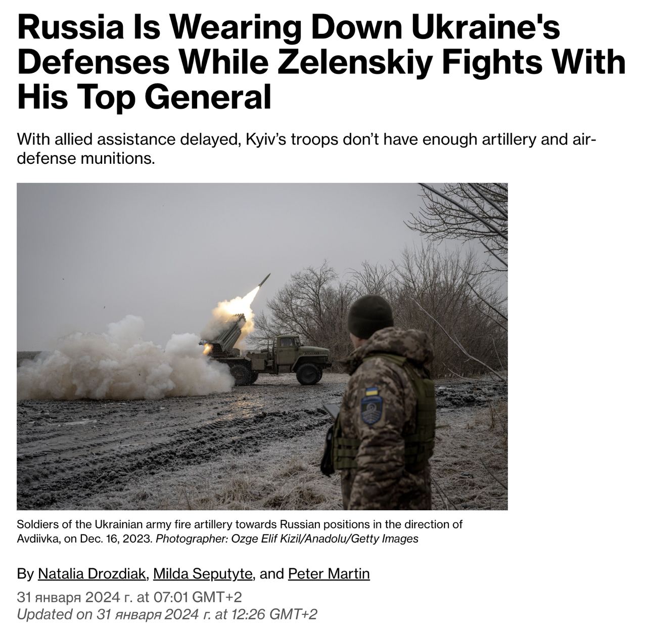 13.38 Украине не хватает артиллерийских снарядов и боеприпасов к ПВО, пишет Bloomberg.