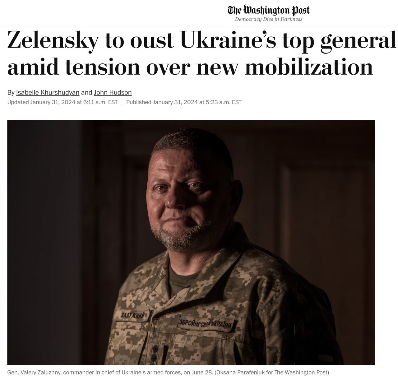 14.14 The Washington Post сообщает подробности разговора Зеленского и Залужного, в ходе которого, как сообщали СМИ, президент призвал главкома уйти в отставку.