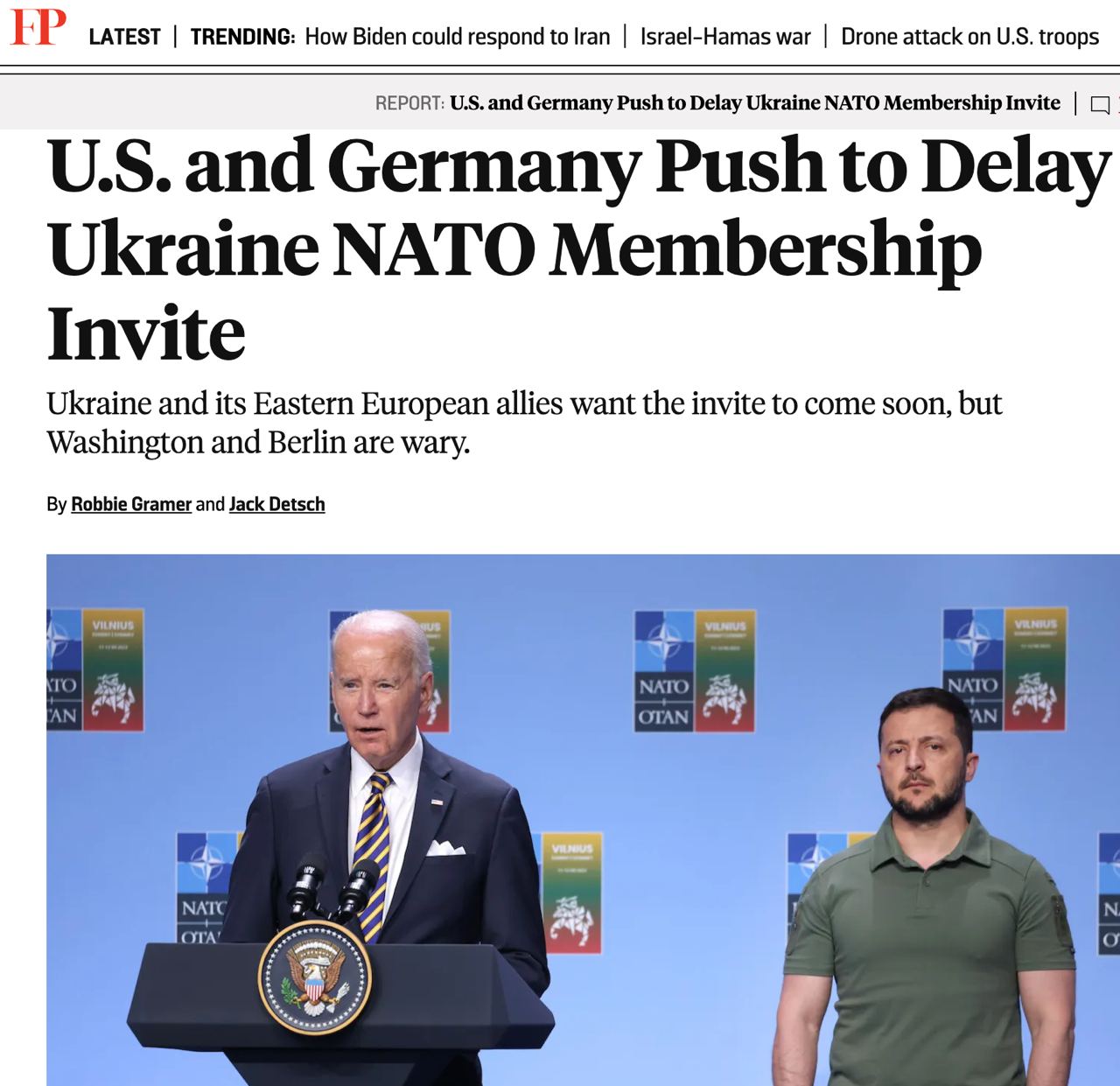 Но США попросили союзников не форсировать эту тему на летнем саммите НАТО в Вашингтоне, чтобы не дать РФ возможность говорить о расколе в Альянсе.